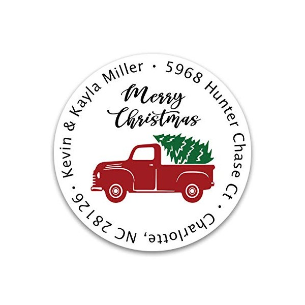 Red Truck Christmas Address Labels - Custom Holiday Return Address Labels, Set of 80 Mailing Labels Round Labels for Envelopes, Self Adhesive Stickers Christmas Red Truck Design (Red Truck - Side)