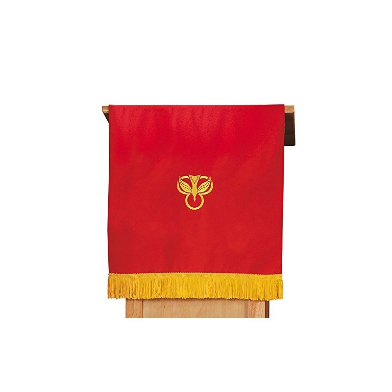 Features a beautifully embroidered dove on red and budded cross on white for use during the Easter, Trinity, Pentecost, Christmas and Confirmation Seasons.Dyed to match reversible stoles. 100 smooth weave polyester. Reinforced embroidered stitching. Fine gold fringe. -- 100 Polyester faille -- 18 x 36 L
