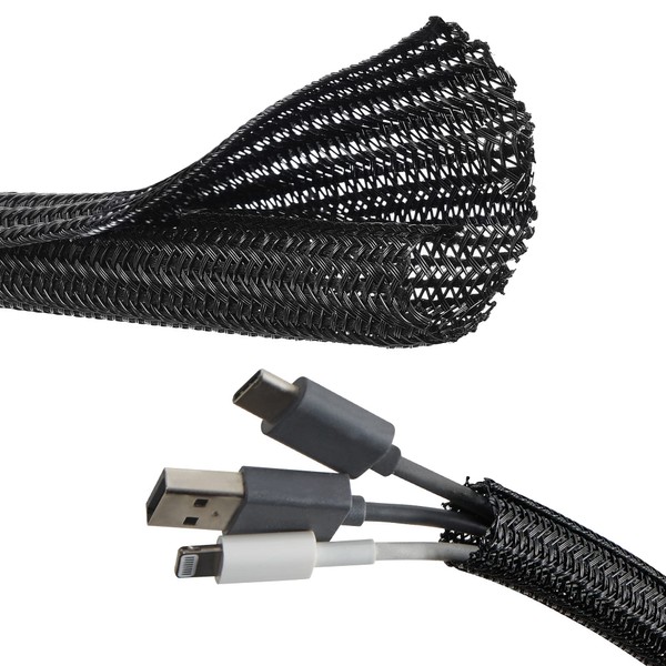 RED WOLF 13 mm - 3 m Cable Sleeve, Self-Closing, Black, Woven Cable Sheath, Anti-Scratch Cable Sock for TV, Computer, Home, Electric, Automotive, Cable Protection, Flexible Cable Management, Cable