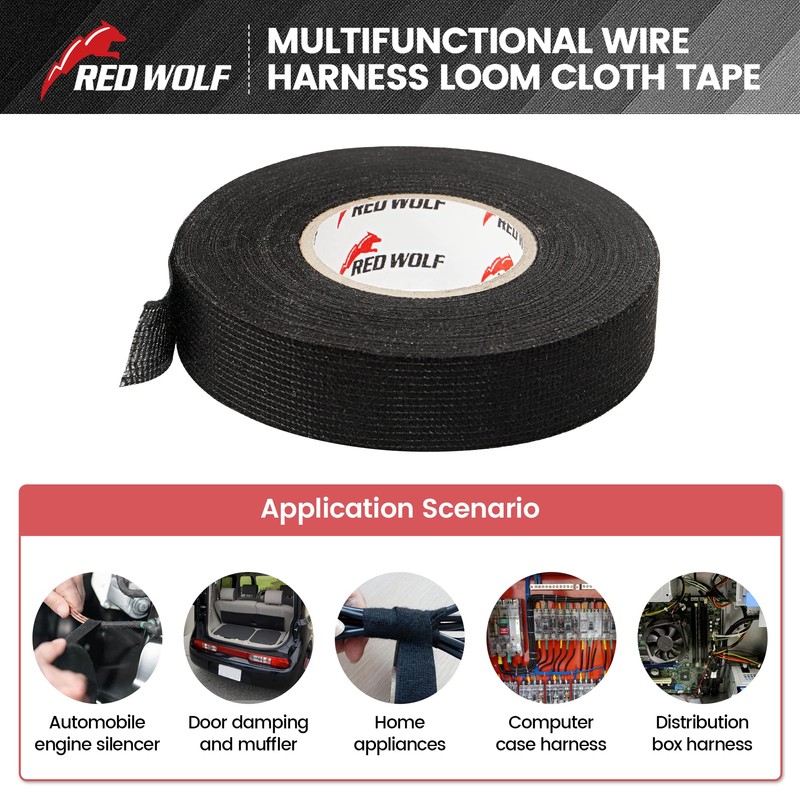 - WIDELY APPLICATION: The material of wire harness cloth tape is soft and corrosion-resistant, which is suitable for the use of wire harness in automobile interior noise reduction part, such as wire harness of the dashboard, main harness wound and applied for wire joint and wire fixing; It can also sort out home appliance wiring and more