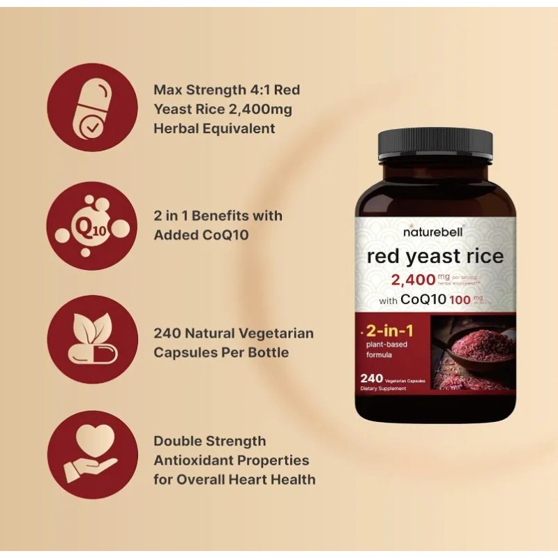 La levadura de arroz rojo contiene compuestos que pueden ayudar a controlar los niveles de colesterol, mientras que la CoQ10 es un antioxidante que puede beneficiar la salud del corazón y mejorar la función muscular.