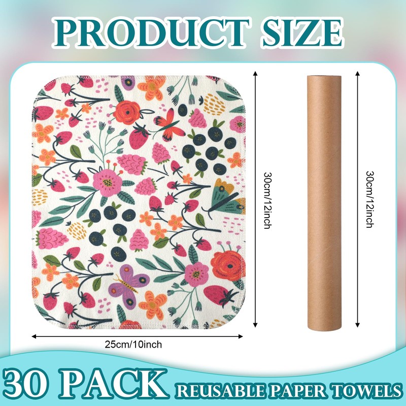 - Sufficient Quantity for Long Term Use: you will receive 60 floral themed kitchen reusable paper towels that come with a cardboard roll; After each use, simply roll them back onto the provided cardboard roll for continuous reuse; This quantity ensures you have enough towels to handle daily kitchen chores without frequent replacements, and they fit in most standard towel holders