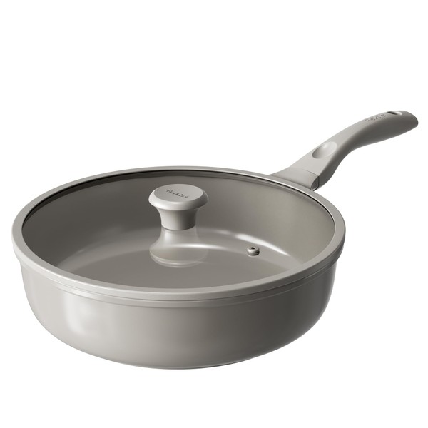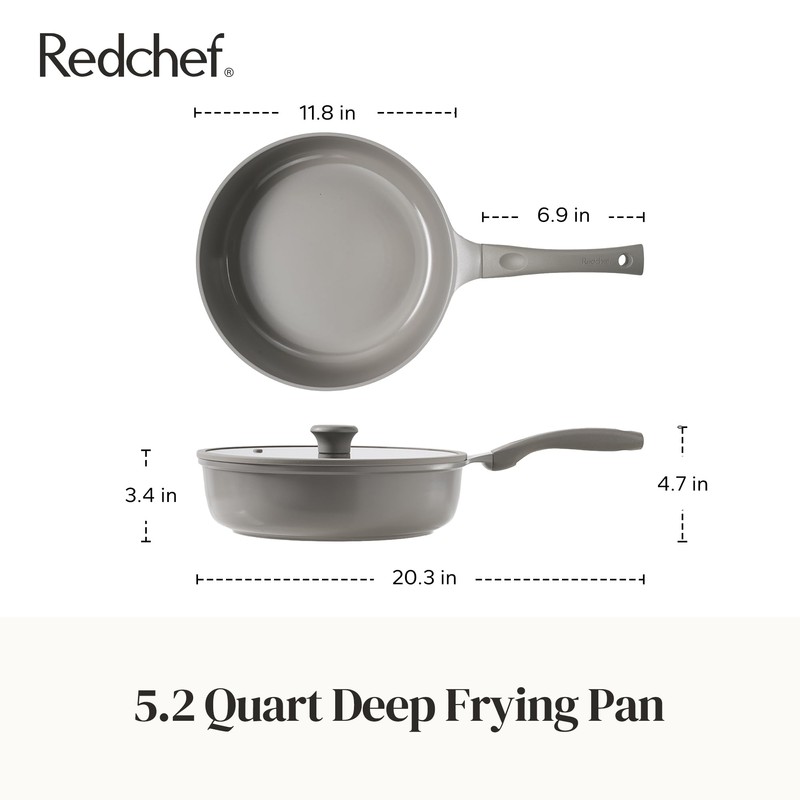 Redchef Ceramic Coated Nonstick Frying Pan with Cover, Large Deep Saute Pan Skillet, Induction Ready, Dishwasher Safe, PFOA PFOS Free, Non Toxic, Glass Lid Large Deep Frying Pan, Grey (5.5Qt, 12")