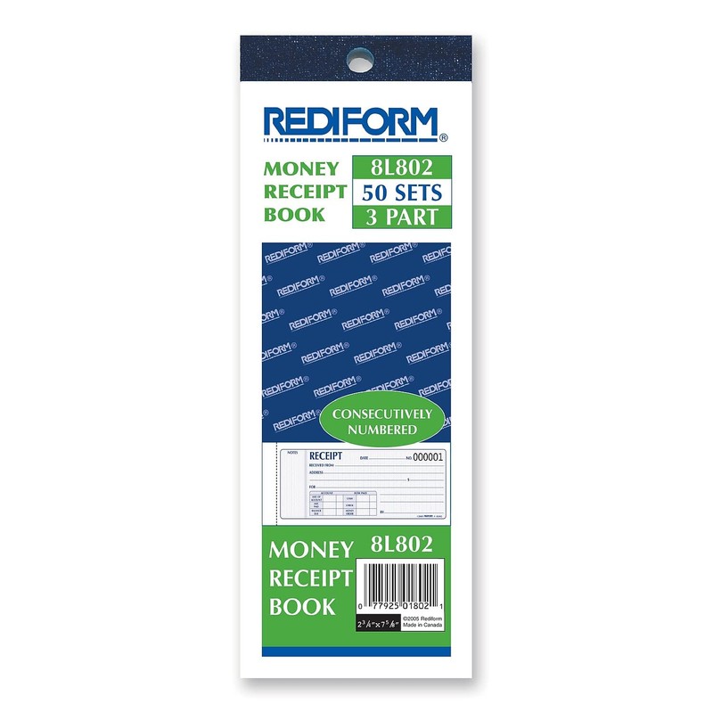 Rediform Money Receipt Book, 2.75 x 7 Inches, 50 Pages (8L802)