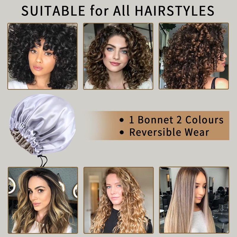 - MULTIFUNCTIONAL SILK BONNET: This sleeping cap is not only suitable for sleeping, but you can also wear it to to help keep hair out of your face during makeup removal, taking a bath, or even while doing housework. This is a great bonnets for women and can be used as a Ideal gift choice for ladies on Valentine, Christmas Days.