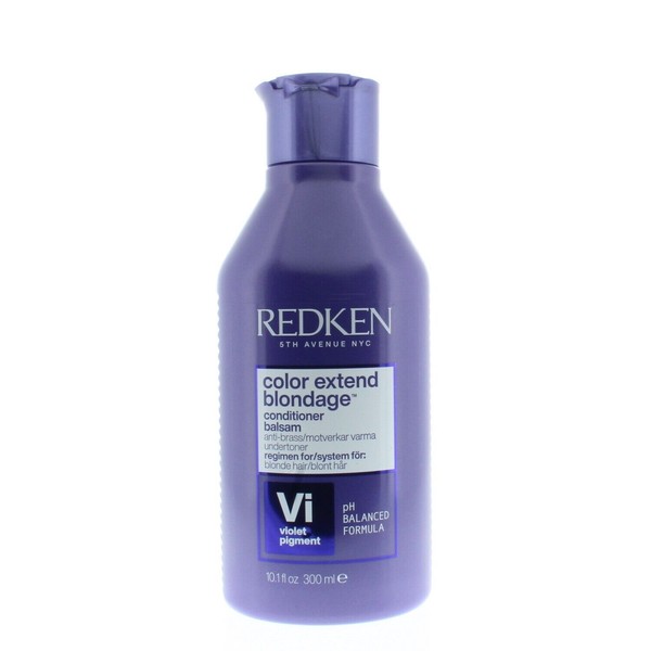 Redken Color Extend Blondage Conditioner is a color-depositing and protecting purple conditioner and hair toner for blonde and highlighted hair. This conditioner features citric acid to strengthen and repair blonde hair from the core and pure violet (purple) pigments to remove unwanted brassiness to leave your blonde hair color cool and bright. This formula gently detangles, strengthens, and moisturizes in one step.