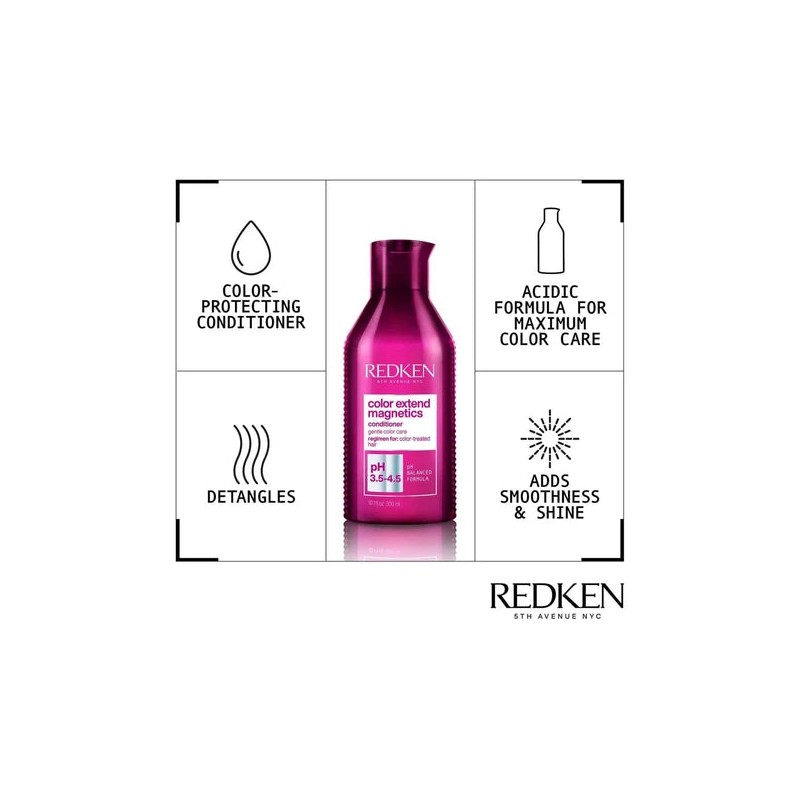 Prescribed for color-treated hair Color Extend Magnetics Conditioner leaves hair feeling softer and smoother while helping prevent hair color fade. Formulated with easy detangling and nourishment from root to tip, this acidic formulation balances hair's pH to ensure shiny, vibrant hair color.