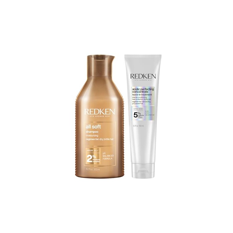 REDKEN - Shampoo All Soft 300ml y Tratamiento sin enjuague Acidic Bonding Concentrate de Redken 150ml | Shampoo hidratante para cabello seco y quebradizo proporciona hidratación profunda desde la raíz hasta la puntas | Tratamiento reparador para cabello dañado con protección térmica de hasta 230°C. 🏆 Reconocido por su excelente relación calidad-precio. Diseño ergonómico y funcionalidad excepcional. 💝 Perfecto como regalo especial. Ideal para quienes buscan lo mejor en calidad y estilo. Producto auténtico con satisfacción total asegurada. ¡No te quedes sin el tuyo y aprovecha esta oportunidad única!