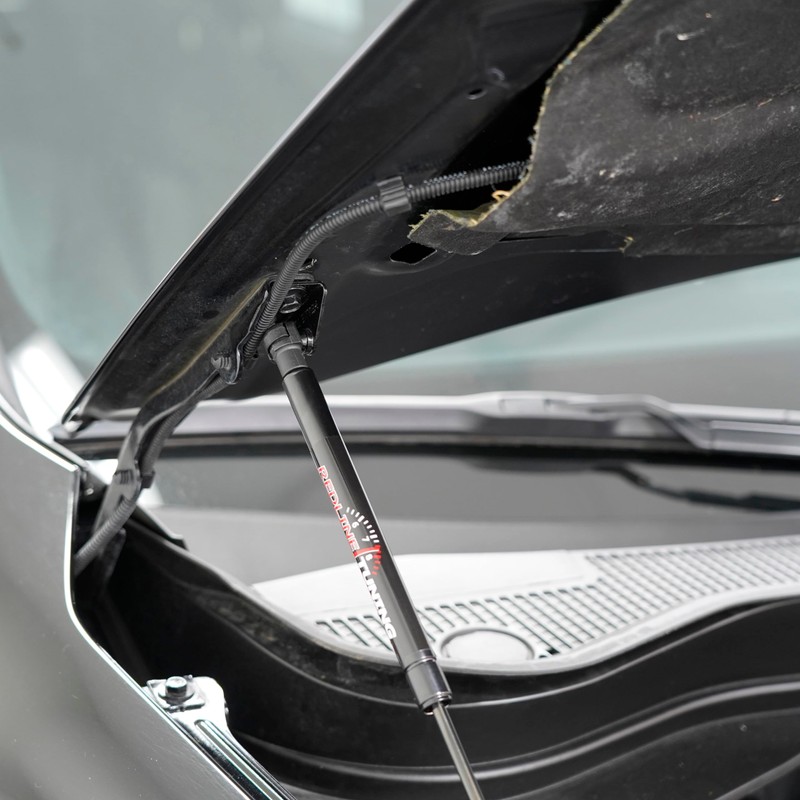 - ✔ PROGRESSIVE-RATE GAS SPRINGS - Redline Tuning gas springs are not off-the-shelf parts, they are designed by us and manufactured to our specifications for each vehicle application. Our exclusive end-of-stroke dampening slows the rate of extension over the final inches of travel eliminating stress to the hood.