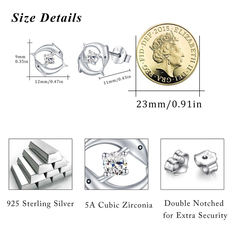 - Dolphin earrings: made of fine 925 sterling silver and decorated with zirconia, nickel-free, lead-free, cadmium-free, not harmful to health. They have a special cutting process, bright colours, fine workmanship, not easy to oxidise and change colour, extend the wearing time.