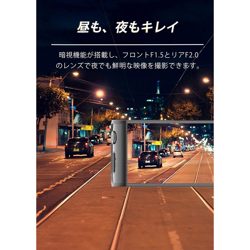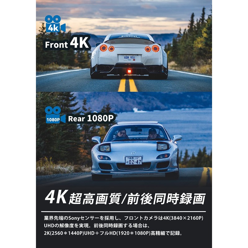 • (WDR) Function: The front camera of this dash cam uses an ultra-large 6-layer optical lens with an aperture of 1.5 aperture, and is equipped with a sensor that supports STARVIS technology, allowing you to record high resolution regardless of day or night. The front and rear cameras are equipped with WDR/HDR for excellent video processing capabilities, allowing you to capture clear images with reduced "white tobi" and "black mashine". Even when there is a difference in light and dark such as at night, rain, snow, fog, etc