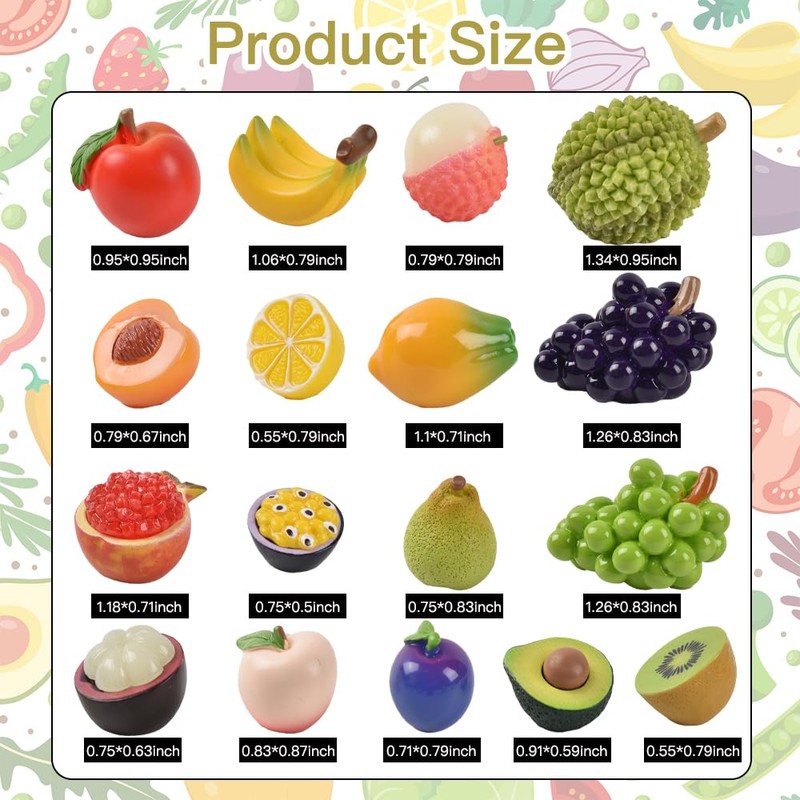 Package Including: You will get 17pcs miniature fruit models.