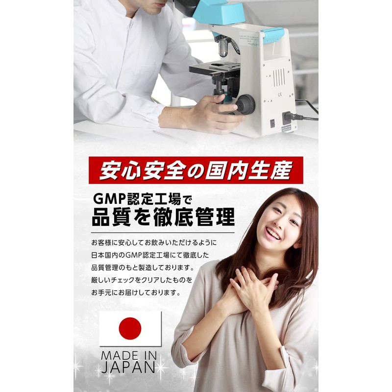 - ✅ 【安心の日本国内製造】お客様に信頼していただけるサプリを提供する為、安全性・品質を徹底管理した国内GMP認定工場で製造しております。