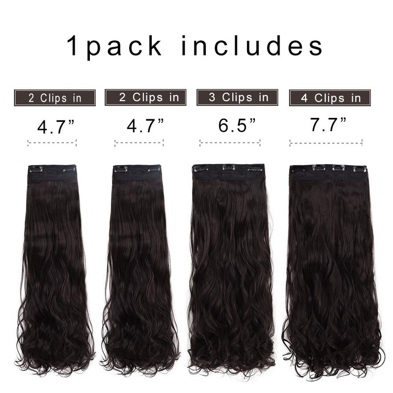 REECHO 24" Curly Wavy 4 Pieces Set Thick Clip in on Hair Extensions Black Brown