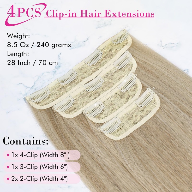 REECHO 28" Straight Long 4 PCS Set Thick Clip in on Hair Extensions -Dark Ash Blonde
