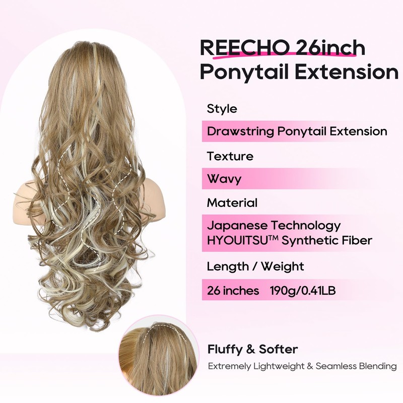 - Naturally Add Length & Volume: Take your ponytail to the next level with REECHO! This stunning 26-inch ponytail extension features the most trendy yet natural wavy hair texture with gorgeous curls, adding volume and length for your ponytail in instant, making it easier than ever to achieve those charming waves.