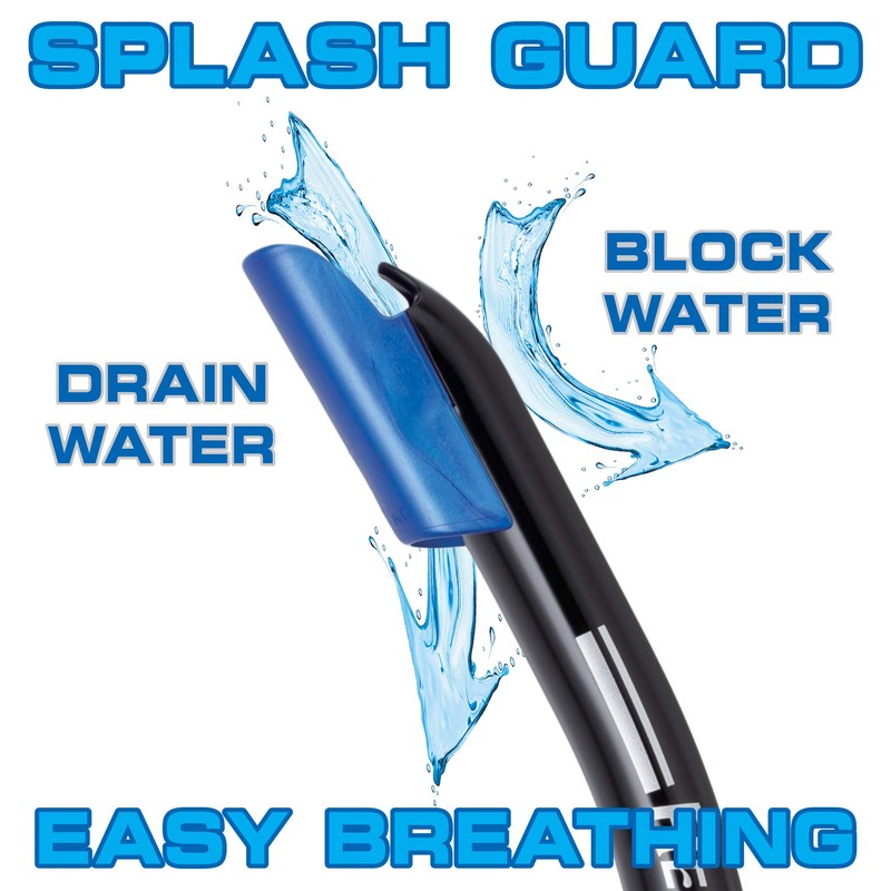 - SEMI-DRY SNORKEL w/SPLASH GUARD & PURGE VALVE: This snorkel features a splash guard to reduce water intake for easy breathing, a food-grade silicone mouthpiece, soft & flexible to avoid jaw fatigue, & a purge valve to easily expel residual water