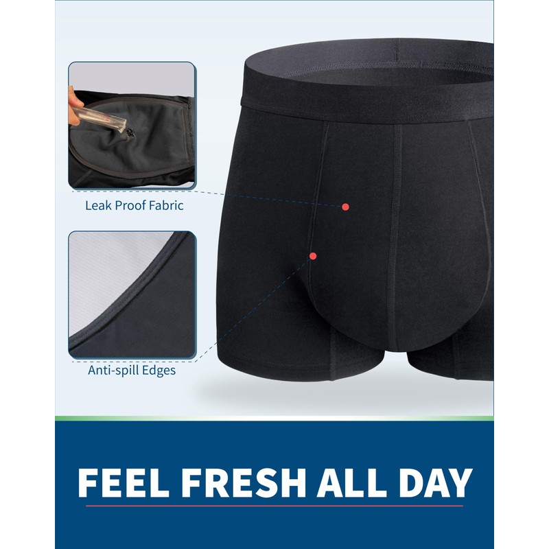 - Impermeability: This leak proof underwear for men is designed with elasticated openings and impermeable fabric in the gusset to minimize the risk of side leakage. These features work together to provide secure and dependable coverage, giving you peace of mind