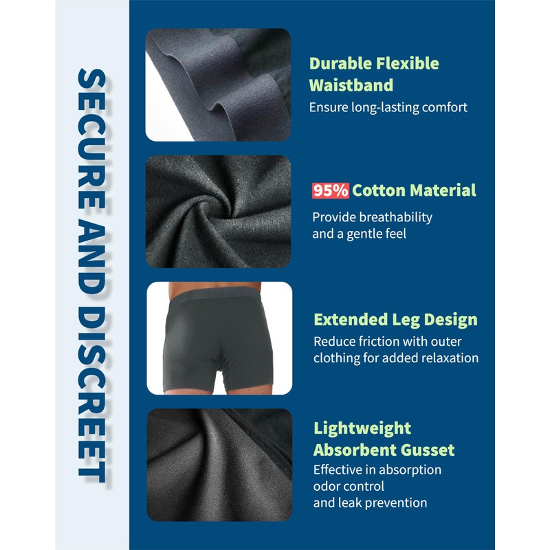 • Leak Protection: Our mens leak proof underwear provides dependable protection, reducing the frequency of clothing and bedding changes. Designed with caregivers in mind, this underwear minimizes cleanup while maximizing security
