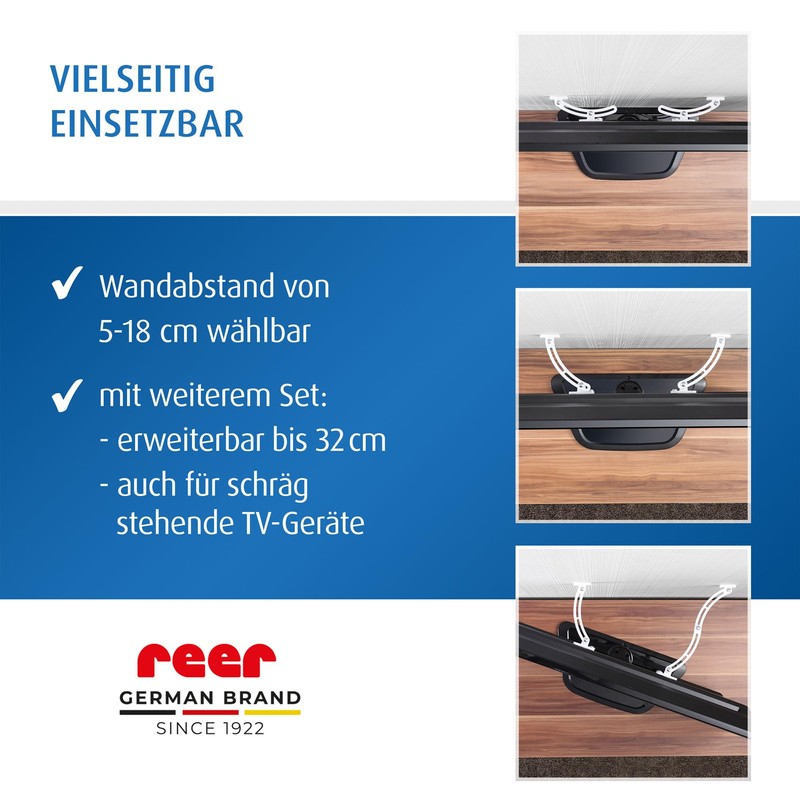- Individually adjustable: the distance from the wall of this flat screen backup can be adjusted between 5 to 18 cm yourself and extend it to up to 32 cm with a second set