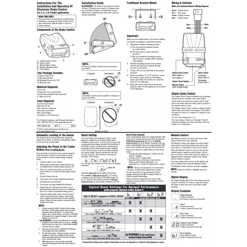 The REESE Towpower BRAKE-EVN brake controller offers advanced proportional braking by applying brake pressure to match the vehicles deceleration rate. Proportional braking gets you get smoother stops that traditional time based controls. The boost feature gives the ability to apply more initial braking at the onset of stopping when towing heavier loads. When adjusted properly for your load, proportional brake controls can even extend the life of your vehicles brakes. The large LED display is easy to see when adjusting the control to handle the weight of your loaded or unloaded trailer. The BRAKE-EVN brake control can handle up to brake 4 axles and offers a simple plug in installation option, so be sure to get the proper factory harness for your vehicle. The perfect choice for light or heavy trailer loads.
