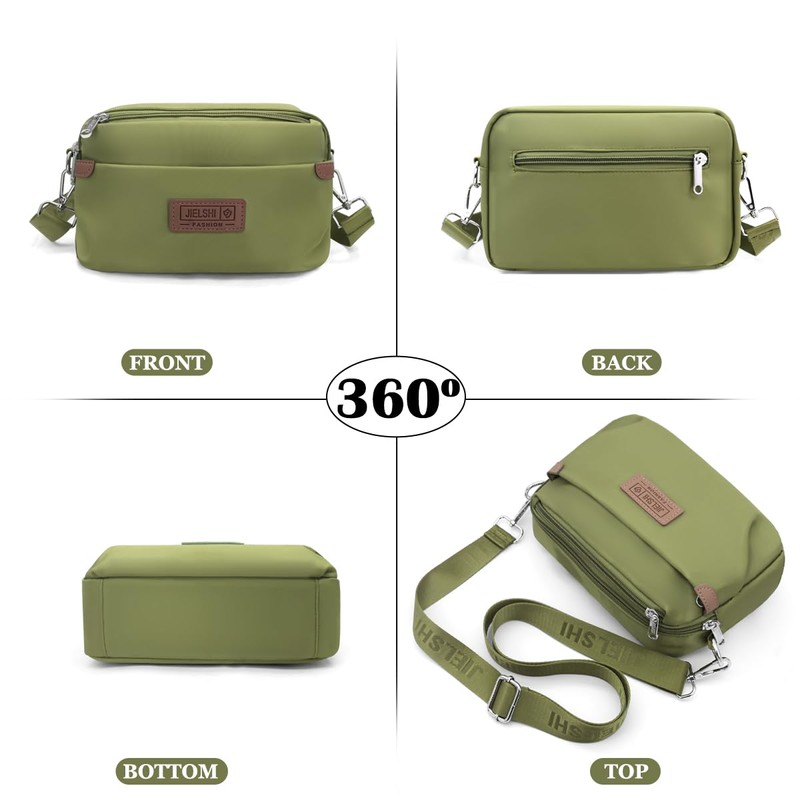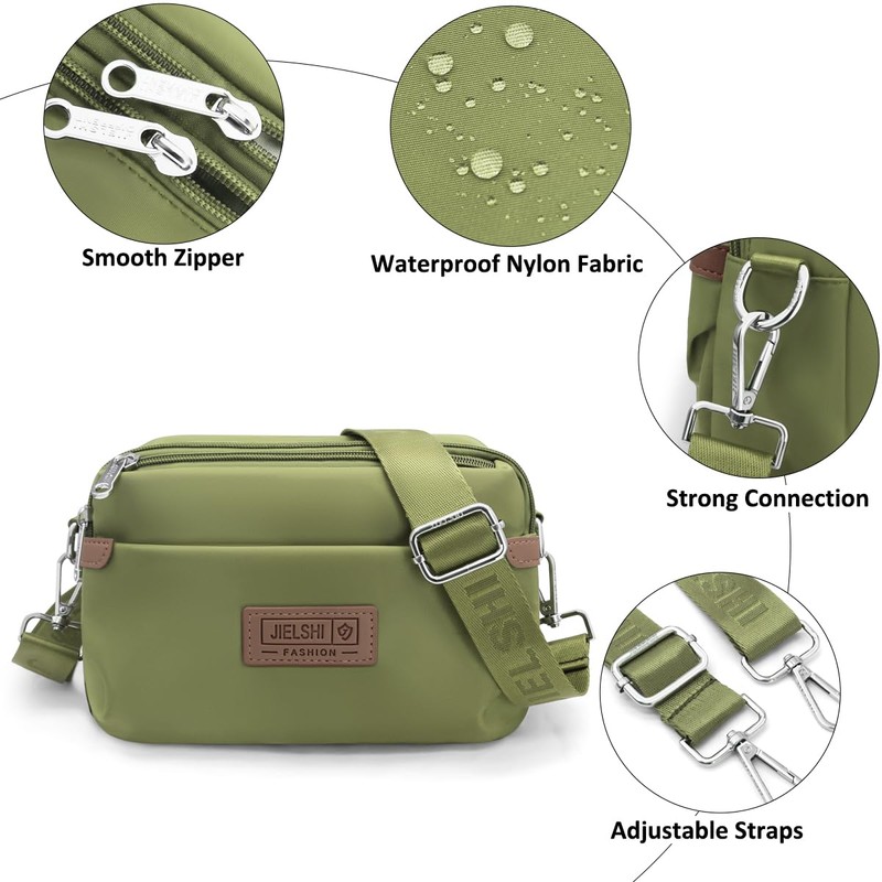 REETEE Women's Shoulder Bag Waterproof Nylon Small Handbag Women's with Many Compartments Crossbody Bags for Women, Small Women's Shoulder Bags with Adjustable Removable Wide Strap, Green