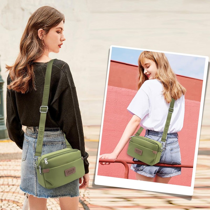 - Handbag with many pockets: the women's crossbody bag has 4 zip pockets, 2 side pockets and 1 anti-theft pocket on the back. The middle bag has a large capacity (including 1 small zip pocket and 2 inner pockets). You can categorize items in order, such as mobile phones, glasses, wallets, cosmetics, keys, cards and other everyday necessities.