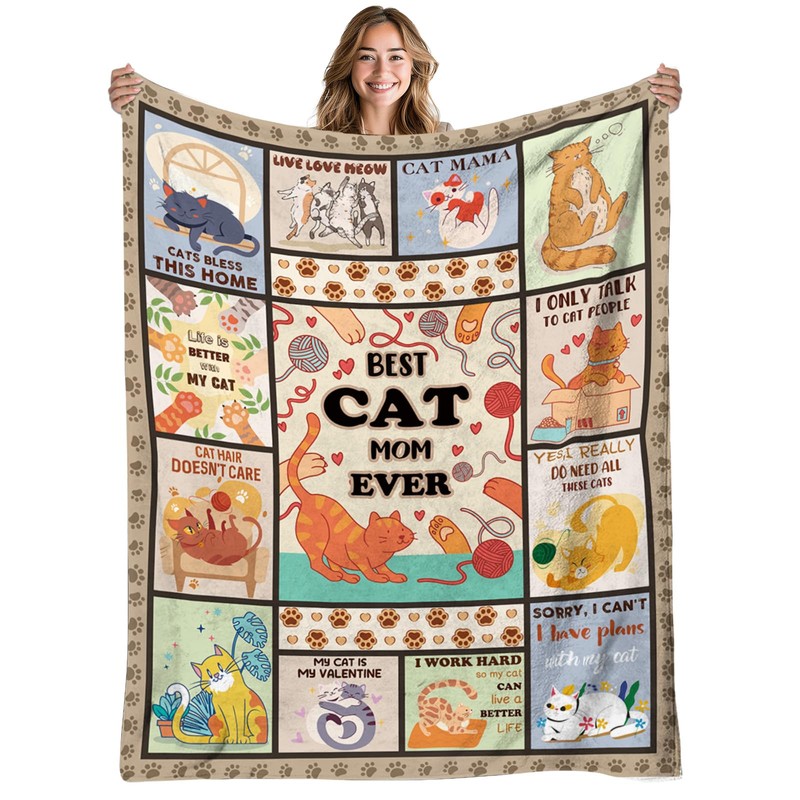 REETOOK Cat Blanket for Cat Lovers, Cat Mom Gifts, Cat Blanket for Women, Birthday Gifts for Friends, for Mom, Flannel Warm Throw Blanket 50x60
