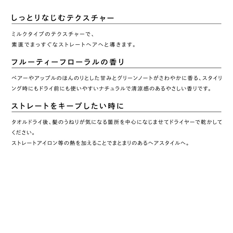 - Straight Lock [Straighten and Swelling] Key ingredient of acid heat treatment and acid heat lock ingredient *1 blend: Formulated to properly repair hair from the inside of the hair, and correct addictions and swelling while taking care of damage. *1. The milk is designed for the health of your hair, creating a softer, more natural straight hair and keeps your hair straighter that is easy to stylish. 1 Glyoxylole Carbotiine, Glyoxyloil Keratin Amino Acid (Hair Conditioning Agent)