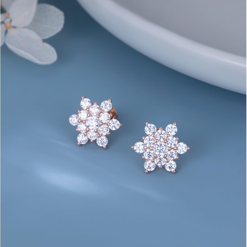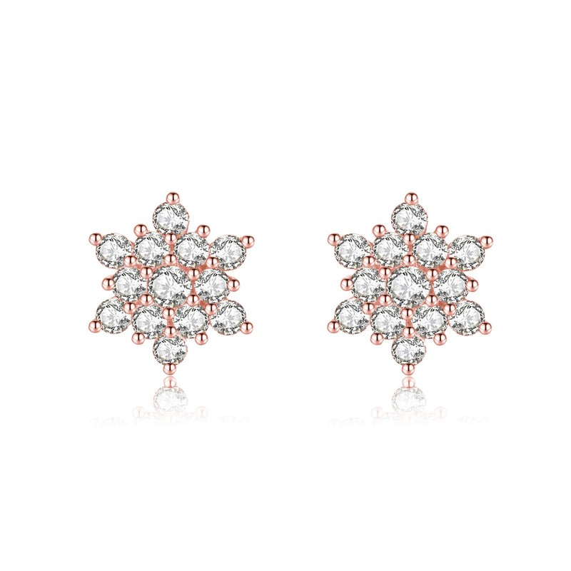 Reffeer Solid 925 Sterling Silver Sparkling Snowflake Earrings Stud for Women Teens Crystal Snowflake Stud Earrings (C-Rose Gold)