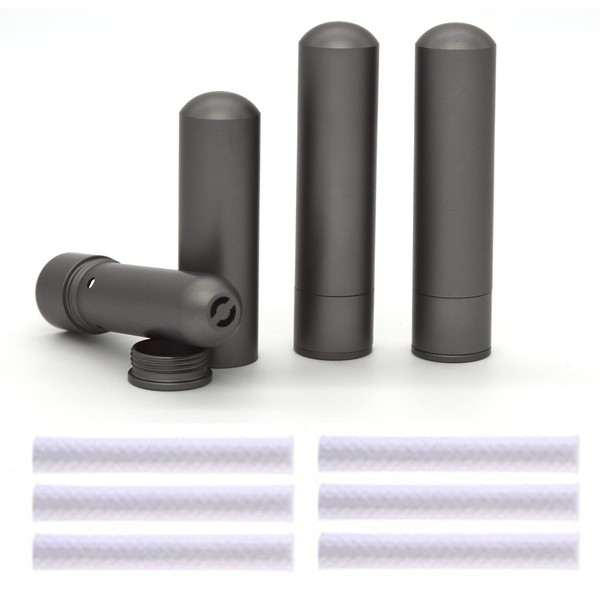 Our empty inhaler tubes come with 6 (six) absorbent cotton wicks, ready to be soaked in an essential oil that you provide. About 15 drops of oil will deliver 3-6 months of inner calm and serenity. When the scent fades, simply use a new wick to create a freshly strengthened scent. Unlike single-use plastic inhalers that are pre-filled, our portable inhalers made of resilient aluminum are long-lasting, eco-friendly and cost-efficient.