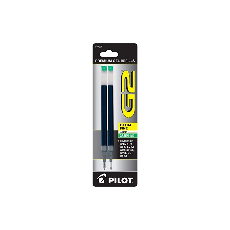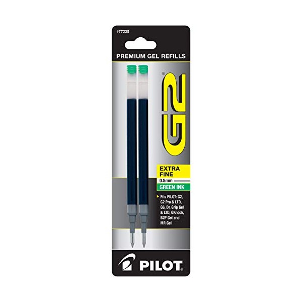 Refills for G2 Gel, Dr. Grip Gel, ExecuGel Roller, Extra Fine, Green Ink, 2/PK