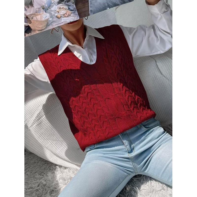 - Features - V neck sweaters vest,sleeveless sweaters,cable knit tank top fall sweaters, oversized v neck sweaters, cable knit sweater vest, solid color sweater tops,loose fit pullover tops. trendy knit sweaters vest is a must-have classic in autumn and winter