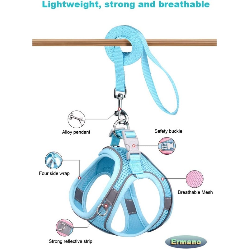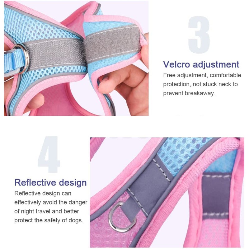 Reflective Breathable Air Mesh Dog Harness with Leash, Adjustable No Pull Puppy Vest, Soft Pet Chest Strap for Small Medium Large Dogs and Cats (Orange Blue, S)