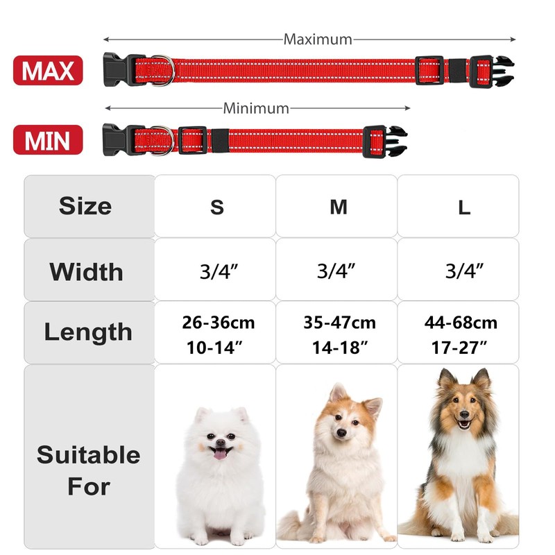 - 【Safety Buckle】 Side release buckle is made out of quality eco-friendly ABS plastic with safety lock to prevent the collar from accidentally opening. Please check the red safety button before use.