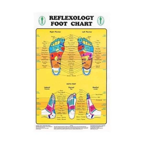 Reflexology Foot Chart - Reflexology Zones Marked. 1 Laminated Chart 8" x 11"