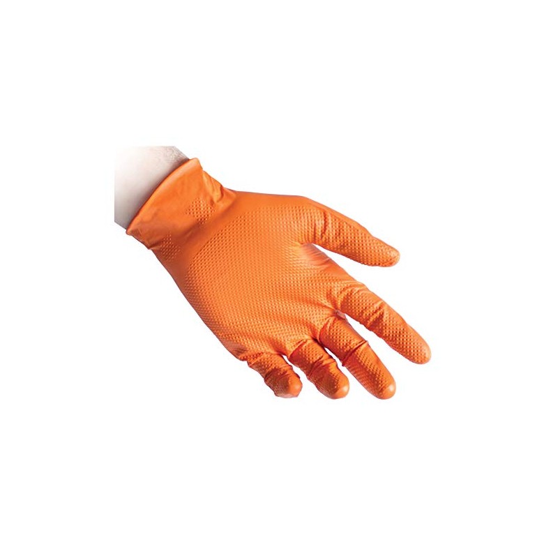 Reflexx N85/L FULL GRIP Nitrile Gloves, Large, Orange, Pack of 50