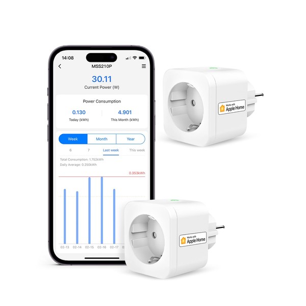Refoss Smart Socket Works with Apple HomeKit, WLAN Socket with Consumption Measurement, Timer Socket with Remote Control, Electricity Meter Balcony Power Plant, with Alexa, Google, Pack of 2
