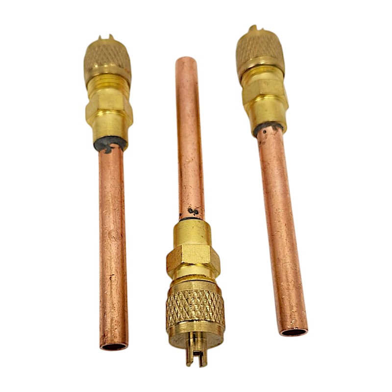 REFRIGE-AIR 3Pack Service Access Valves – 1/4" SAE x 1/4" OD x 4" Stem – Brass & Copper Schrader Valve Kit with Core Remover & Cap – HVAC Charging Tool for AC Refrigerant Systems
