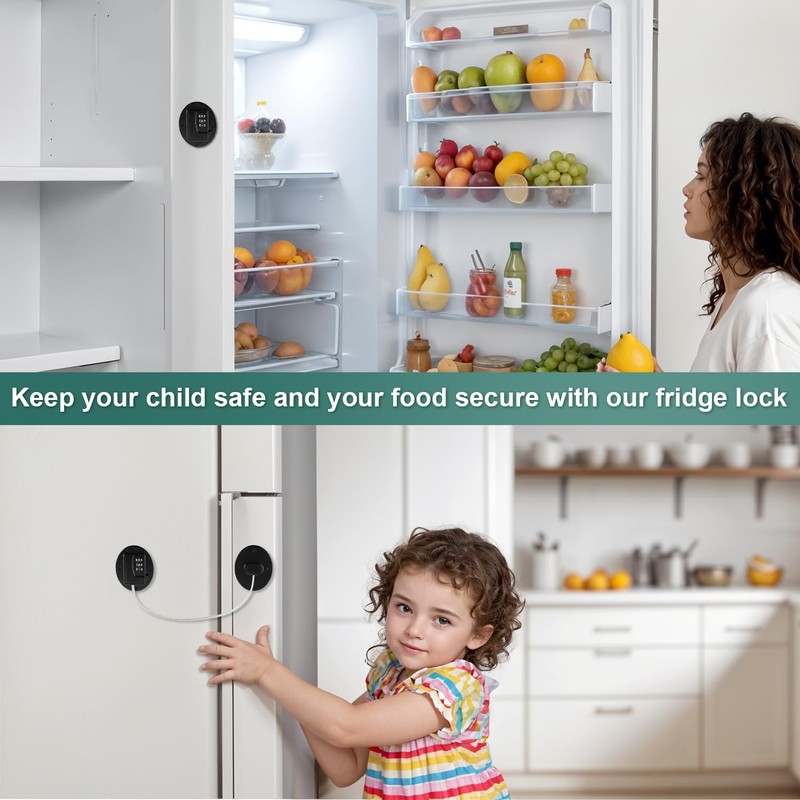 - 【Keyless Refrigerator Lock】: You no longer have to worry about losing your refrigerator lock because you can't find the key. The 3-digit password lock design is simple and smooth to use. Just turn the dial and press the button to open the refrigerator lock. The initial password is 000. The video provides instructions for changing the password. After setting the password, don't forget your password combination.
