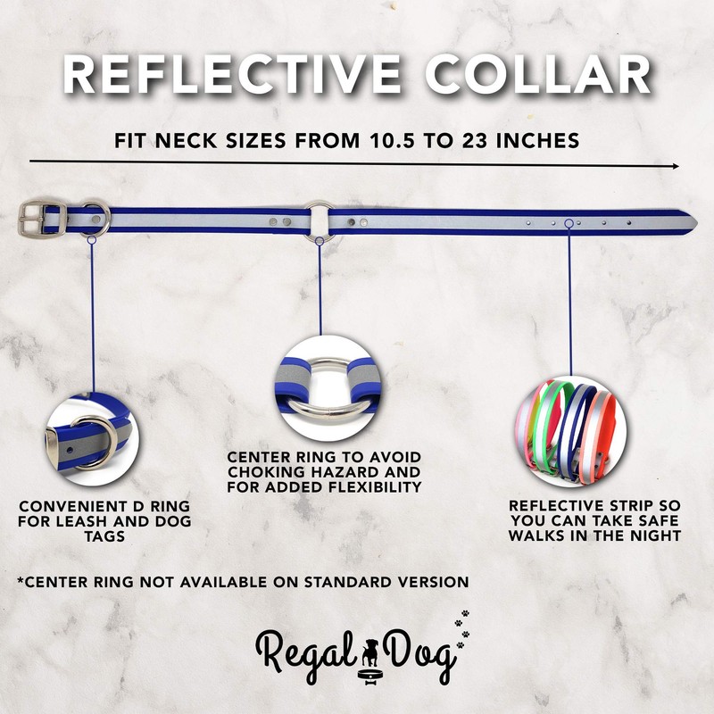 - SAFETY AFTER SUNDOWN – Walking your dog in the dark is dangerous. Fetch some safety for both you and your furry friend with the Reflective Dog Collar by Regal Dog Products! As cars pass, the highly reflective strip notifies drivers of your presence so they can safely steer clear. Dog collars for small dogs.