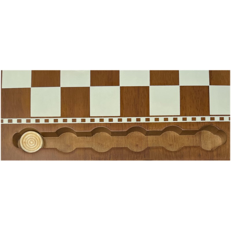 - DURABLE - The game board measures 15.5” x 12.5” and is durably constructed from 3/4" solid natural pine with a rich pattern of natural pine and walnut finishes. The checkers pieces are 1.18" in diameter. The board features built-in recessed storage grooves for the interlocking checkers. The interlocking brown and white checkers pieces are also made from solid wood, designed for long-term use and ease of making Kings.