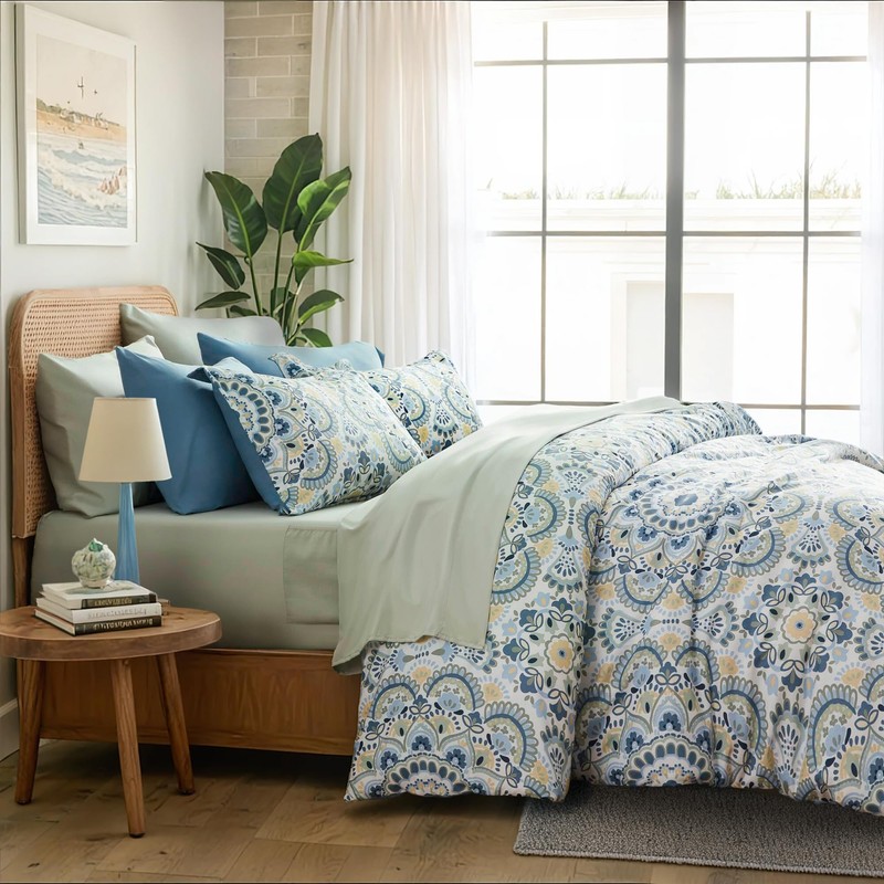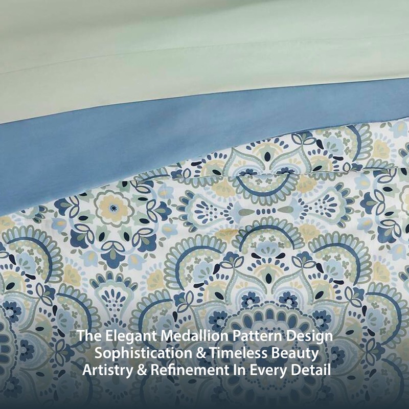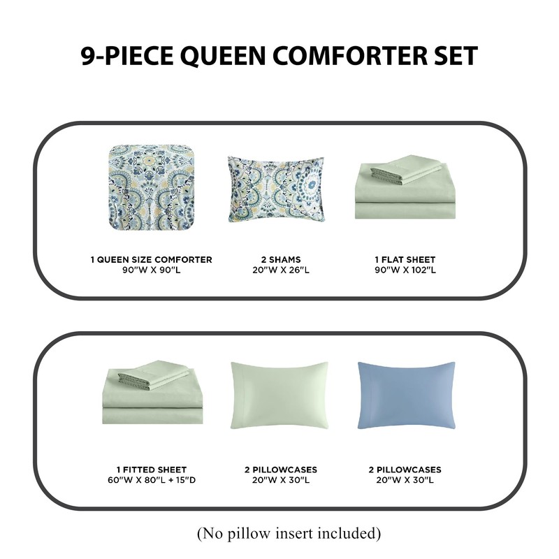 Regency Heights 9PCS Bedding Set, Queen Size Comforter Set with Sheets, Ultra-Soft Microfiber Bed in a Bag with Medallion Pattern, Fitted Sheet with Side Pocket, Machine Washable, Green