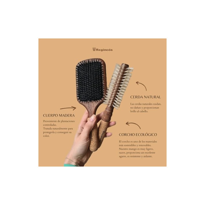 - Round brush with cork handle, particularly light, water-repellent, moisture-resistant and anti-static.