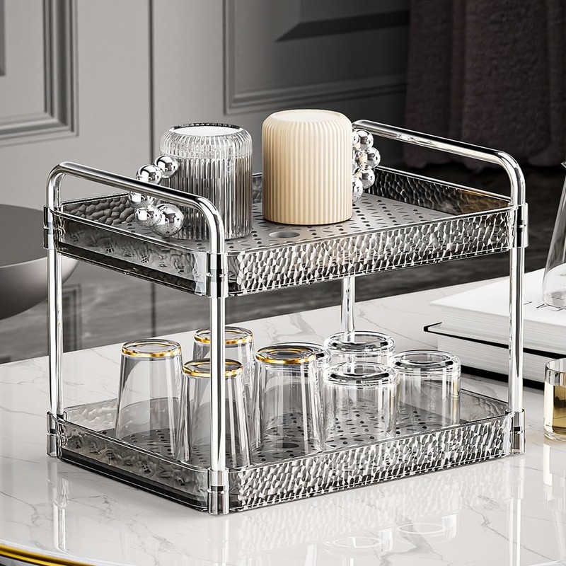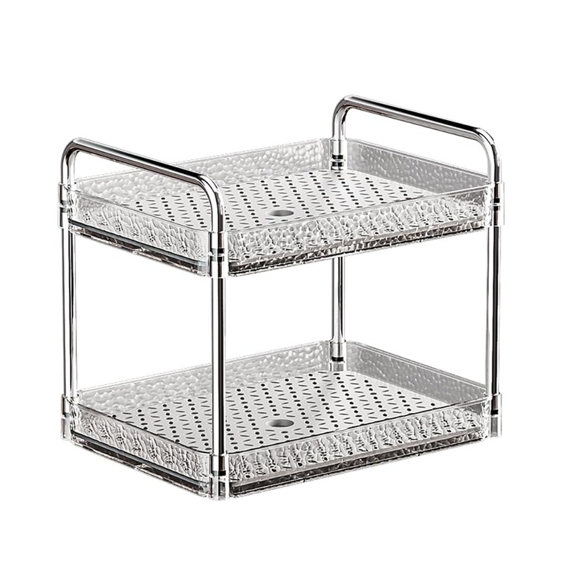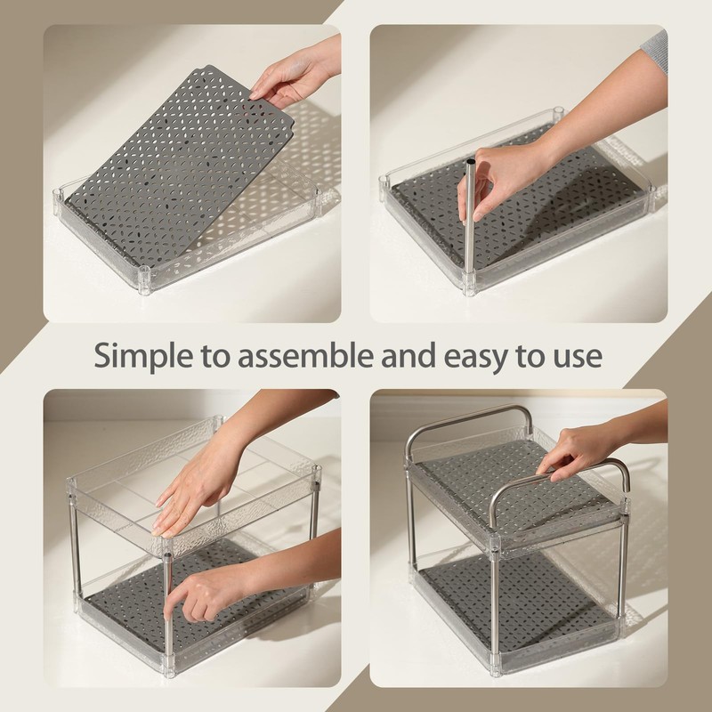 Reginsnow 2-Tier Plastic Shelving Unit, Stackable Storage Rack, Bathroom & Kitchen Organizer, Under Sink & Vanity Storage, Clear Pantry & Laundry Organization, Multi-Purpose Storage Solution