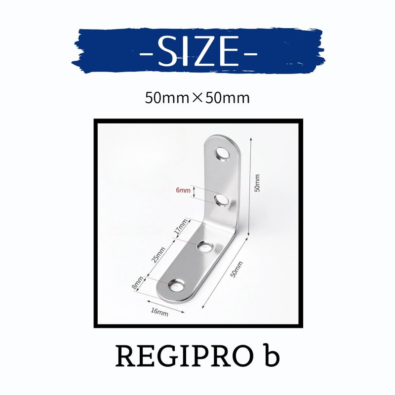 Regipro b L-shaped Angle Brackets, Set of 10, Reinforced Hardware, Screws, Silver, 2.0 x 2.0 inches (50 x 50 mm)