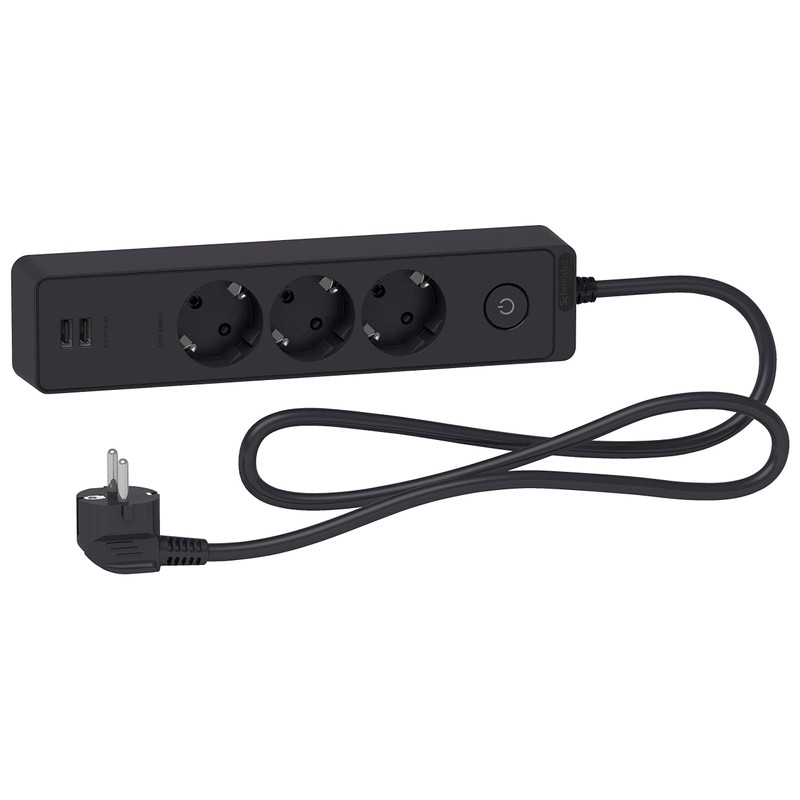 Regleta 3 tomas 1.5 m 2 USB Neg.