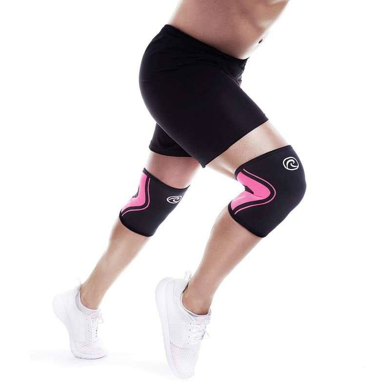Rehband Knee Sleeve 3mm Neoprene, Lightweight Knee Brace for Endurance and Ball Sports, Unisex Compression Starter Knee-Sleeves, Breathable Running Knee Support, Colour:Pink - 1 Pair, Size:Large