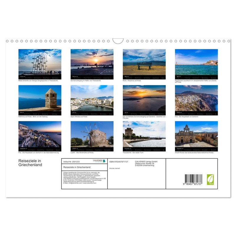 Reiseziele in Griechenland (Wandkalender 2026 DIN A3 quer), CALVENDO Monatskalender: Drei Orte in Griechenland neu entdeckt (CALVENDO Orte)