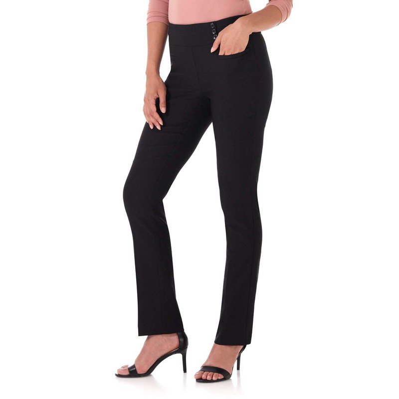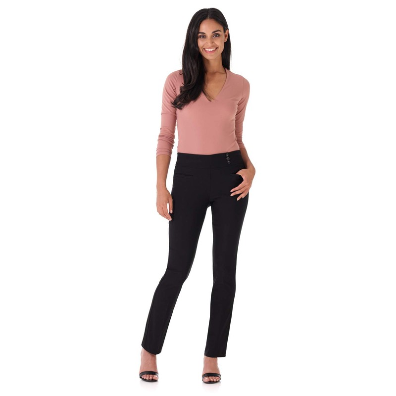 Rekucci Women's Ease Into Comfort Pull-On Straight Pant with Pockets (8, Black)